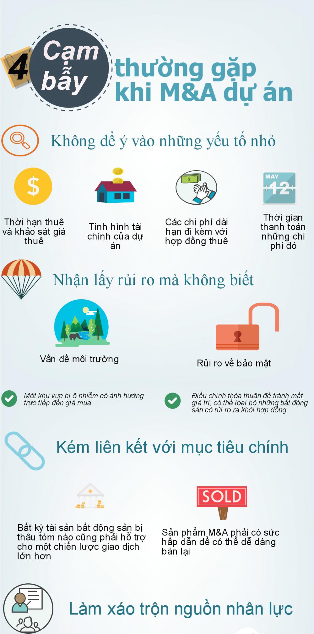 Tuy việc thâu tóm bất động sản từ M&A được xem là một cách để tối đa hóa giá trị mang lại hiệu quả cao nhưng thường thì bất động sản được xem xét trong giai đoạn sau của cuộc đàm phán và điều này có thể làm xuất hiện nhiều vấn đề khi những rủi ro lộ diện.