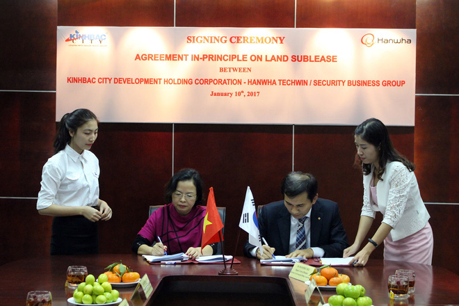 Mới đây, Công ty Hanwha Techwin/Security thuê lại 6 ha tại khu công nghiệp Quế Võ (khu mở rộng) - Bắc Ninh. Giai đoạn 1 của dự án có tổng mức đầu tư là 30 triệu USD, đồng thời sẽ đặt cọc ngay 40% giá trị hợp đồng.