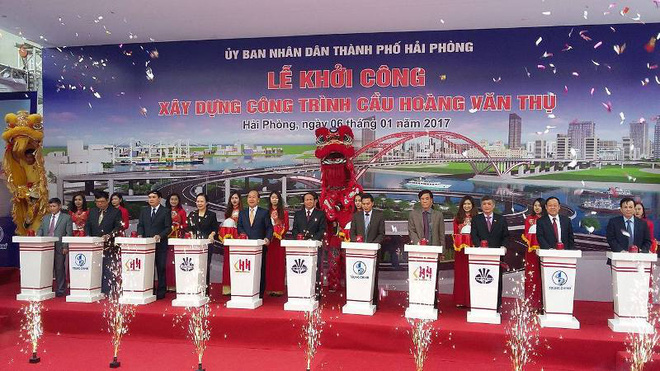 Chiều 6/1/2016, UBND TP Hải Phòng đã tổ chức lễ khởi công xây dựng cầu Hoàng Văn Thụ thuộc Dự án đầu tư xây dựng hạ tầng kỹ thuật khu đô thị mới Bắc Sông Cấm. Ông Nguyễn Văn Công, Thứ trưởng Bộ Giao thông Vận tải tới dự lễ khởi công công trình này.