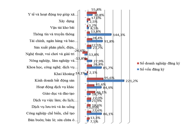 Trong 11 tháng năm 2016, lĩnh vực kinh doanh bất động sản dẫn đầu về số lượng doanh nghiệp thành lập mới với 2.825 doanh nghiệp thành lập, so với cùng kỳ năm ngoái tăng 95,6%.